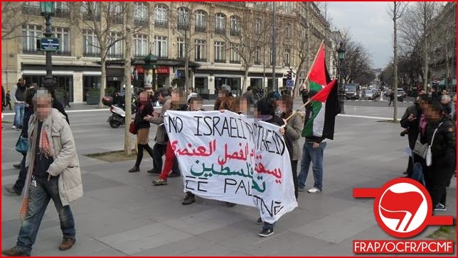 Les autres groupes sont retournés sur la place, mais, face à la police, le cortège Free Palestine et celui du Bloc Rouge ont continué la marche, aux cris de : "Troupes françaises, hors d'Afrique ! A bas l'impérialisme et ses chiens de garde !", "Palestine vivra, libérez Georges Abdallah !"
